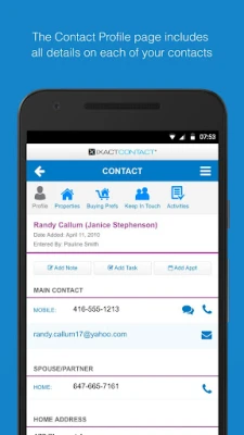 IXACT Contact is an integrated CRM, Email Marketing, and Realtor® Website solution designed specifically for real estate agents. IXACT Contact provides you with all the tools you need to manage your keep in touch communications, your listings and active buyers, and your online presence with a single, easy to use platform. Download IXACT Contact’s mobile app, and you’ll have the following features at your fingertips, anywhere, anytime: