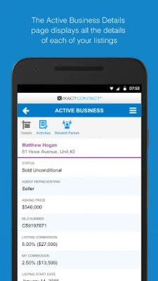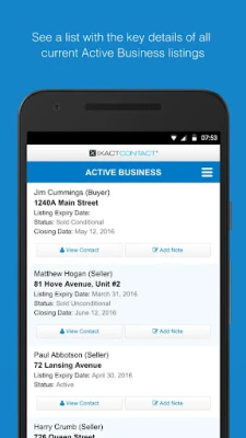 - Add contacts, update all of their profile information, and easily initiate and record all contact interactions - Assign contacts to your Monthly e-Newsletter, Keep in Touch Call schedules, and Marketing Activity Plans - Manage all of your day-to-day activities and appointments - Access all of your current Active Business listings and Active Buyers, and record notes for your customer reports