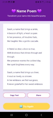Transform ordinary names into extraordinary poetry. Download Name Poem today and discover the hidden beauty in every name.