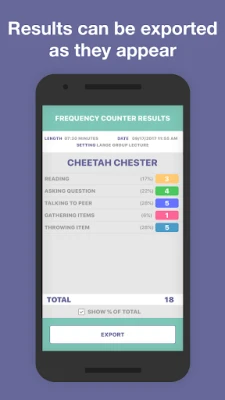 They can be exported as a table, bar graph, or as a CSV file (e.g. Excel/Numbers) for analysis.