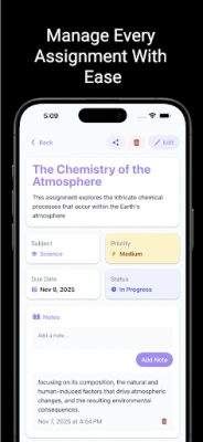 Stay ahead of your schedule, never miss a deadline, and manage all your assignments in one organized place.